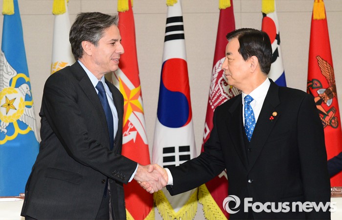 (서울=포커스뉴스) 20일 오전 서울 국방부에서 한민구 장관과 토니 블링큰 미 국무부 부장관이 북한의 제4차 핵실험에 대한 평가와 함께 한·미 양국의 공조 방안 등을 논의하기에 앞서 기념촬영을 하고 있다.