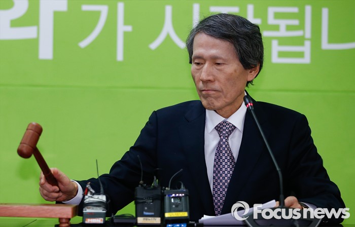 (서울=포커스뉴스) 20일 오전 서울 마포구 국민의당 당사에서 열린 기조회의에서 한상진 공동 창준위원장이 의사봉을 두드리고 있다.