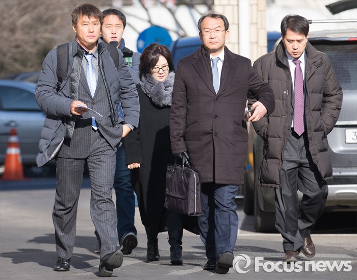 (서울=포커스뉴스) 책 '제국의 위안부'를 써 일본군 위안부 피해자들의 명예를 훼손했다는 혐의로 재판을 받게 된 박유하(가운데) 세종대 국제학부 교수가 20일 오전 서울 광진구 동부지방법원에서 열린 공판에 출석하고 있다.