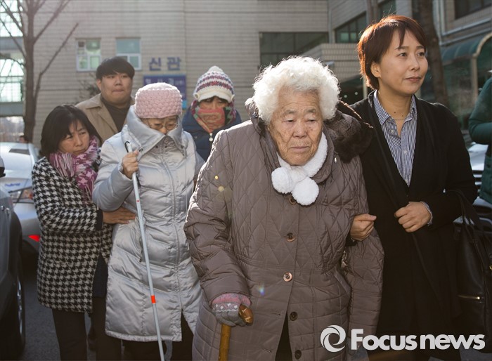 | △ 법정 나서는 위안부 피해자 할머니들 |