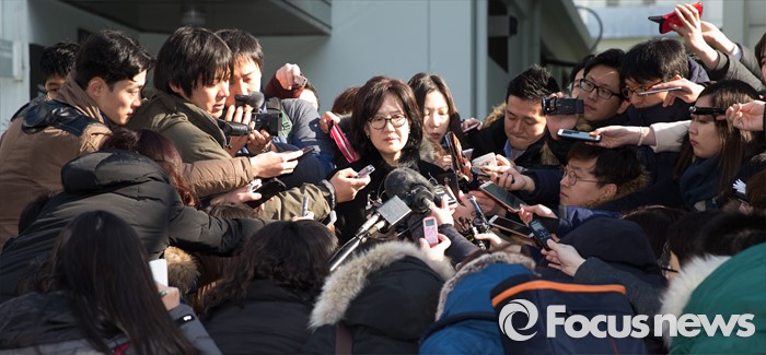 (서울=포커스뉴스) 책 '제국의 위안부'를 써 일본군 위안부 피해자들의 명예를 훼손했다는 혐의로 재판을 받게 된 박유하 세종대 국제학부 교수가 20일 오전 서울 광진구 동부지방법원에서 열린 공판이 끝난 뒤 취재진의 질문에 답변하고 있다.