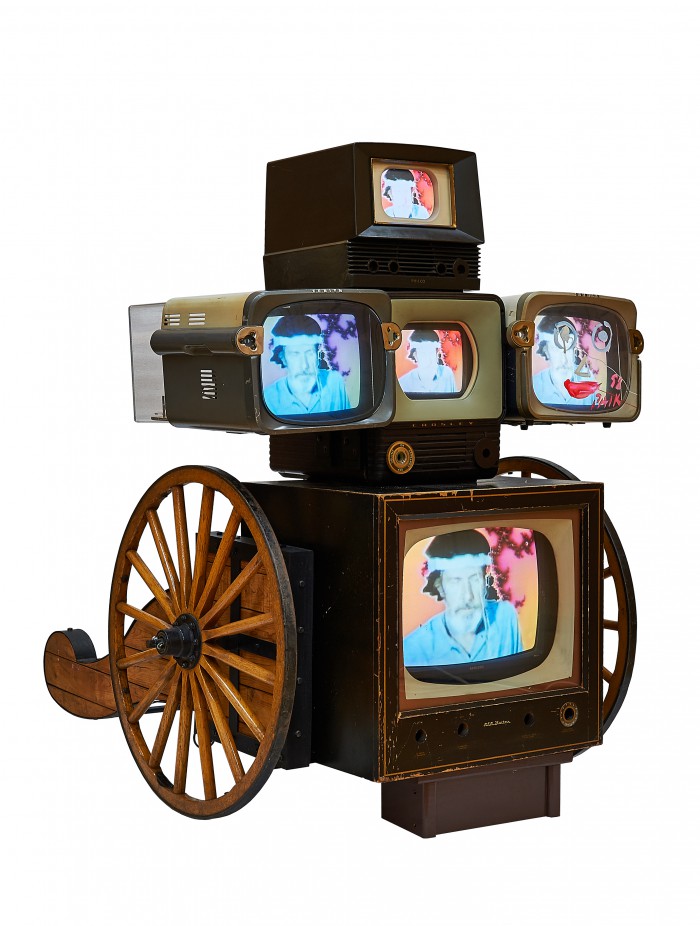 전시에서는 백남준, 김주현, 데비 한, 옥인 콜렉티브, 이피, 주재환 등 작가 30명의 작품 60여점을 만날 수 있다. 세대와 장르를 아우르는 대표작들이다. 서울시립미술관은 "시각예술의 아름다움과 동시대 사회문화적 담론에 대한 다각적 고민을 들여다볼 수 있을 것이다"라고 소개했다. 19일 시작한 전시 '2015 SeMA 컬렉션-쇼케이스'는 다음달 27일까지 열린다.세계적 비디오아티스트 백남준의 1998년작 '자화상 (Self-Portrait Dharma Wheel)'. <사진제공=서울시립미술관>