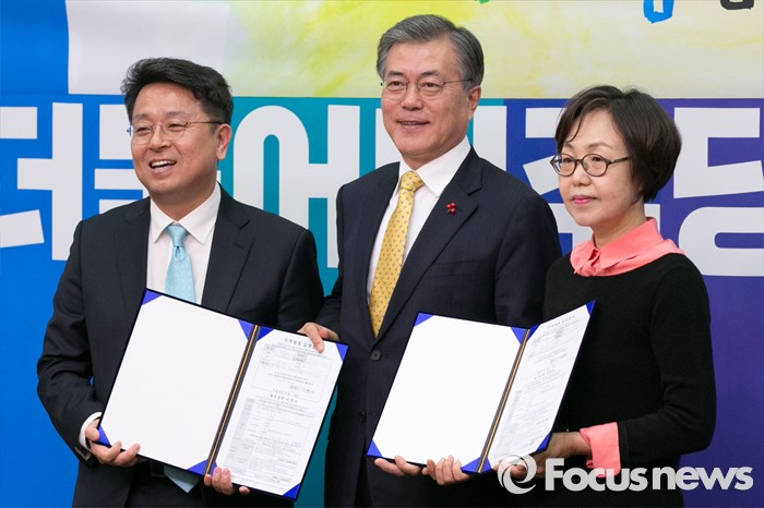| △ 문재인과 함께 선 이철희·권미혁 |