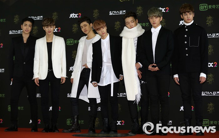 (서울=포커스뉴스) 20일 서울 동대문구 경희대학교 평화의 전당에서 열린 제 30회 골든디스크 시상식에 참석한 아이돌 그룹 아이콘이 포토타임을 갖고 있다.