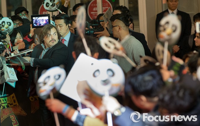 (서울=포커스뉴스) 할리우드 애니메이션 '쿵푸팬더 3' 홍보차 내한한 배우 잭 블랙이 20일 오후 서울 영등포구 타임스퀘어에서 열린 레드카펫 행사에 참석해 팬들에게 사인해주고 있다.