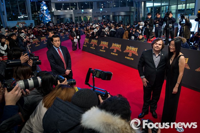 (서울=포커스뉴스) 할리우드 애니메이션 '쿵푸팬더 3' 홍보차 내한한 배우 잭 블랙과 여인영 감독이 20일 오후 서울 영등포구 타임스퀘어에서 열린 레드카펫 행사에 참석해 포즈를 취하고 있다.
