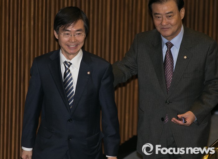 조 의원은 이날 오전 최고위원회의에 참석 후 같은날 오후 새누리당 부산시당에 입당원서를 낼 계획이다.지난 19일 더불어민주당을 탈당한 조경태(왼쪽) 무소속 의원과 강창희(오른쪽) 새누리당 의원. 2015-12-31 박동욱 기자