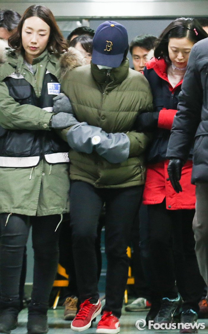 | △ 원미서 나서는 피의자 한모 씨 |