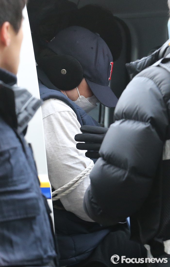 (부천=포커스뉴스) 부천 초등생 살해사건의 2차 현장검증이 실시된 21일 오전 피의자의 전 거주지로 알려진 부천 원미구 한 빌라에 피의자 최모 (33)씨가 범행 상황을 재연하기 위해 호송차에서 내리고 있다.