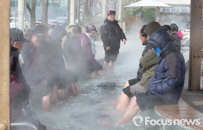 (대전=포커스뉴스) 절기상 대한인 21일 오전 대전 유성구 족욕체험장에서 영하의 강추위에도 불구하고 시민들이 온천수에 발을 담그고 몸을 녹이고 있다.