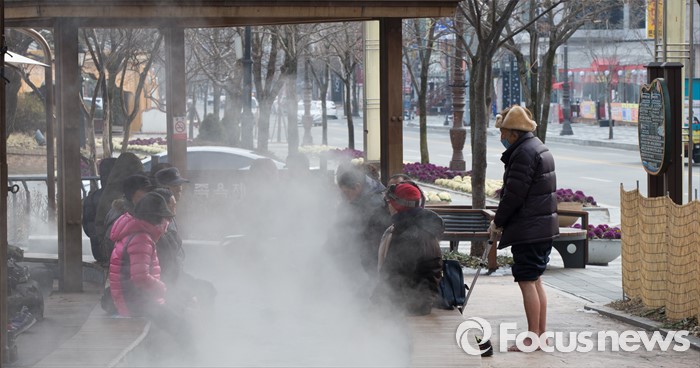 (대전=포커스뉴스) 절기상 대한인 21일 오전 대전 유성구 족욕체험장에서 영하의 강추위에도 불구하고 시민들이 온천수에 발을 담그고 몸을 녹이고 있다.