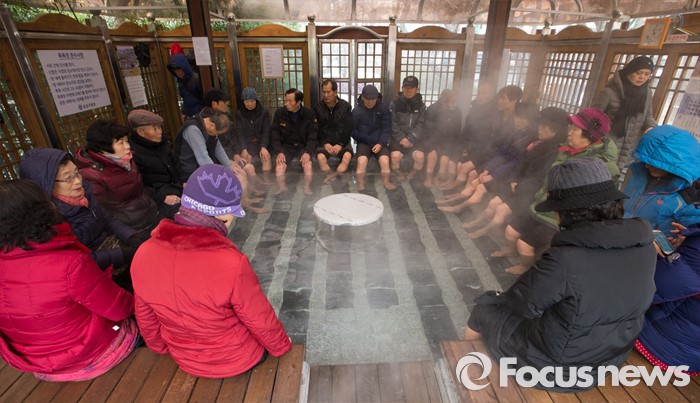 (대전=포커스뉴스) 절기상 대한인 21일 오전 대전 유성구 족욕체험장에서 영하의 강추위에도 불구하고 시민들이 온천수에 발을 담그고 몸을 녹이고 있다.