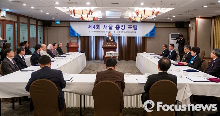 (서울=포커스뉴스) 이용구 중앙대학교 총장이 21일 오전 서울 중구 프레스센터에서 열린 '제4회 서울 총장 포럼'에서 인사말을 하고 있다.