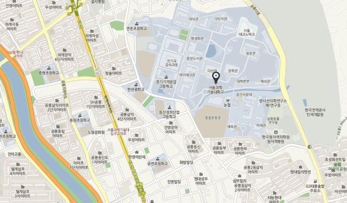 ◆7호선 공릉(서울과학기술대학교)역 2번 출구 하차(도보 10분) 마을버스 03번, 교내 경유 마을버스 13번 이용(5분 소요)