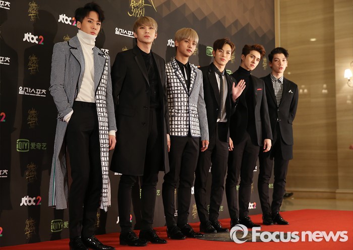 (서울=포커스뉴스) 21일 서울 동대문구 경희대학교 평화의 전당에서 열린 제 30회 골든디스크 시상식에 참석한 아이돌 그룹 빅스가 포토타임을 갖고 있다.