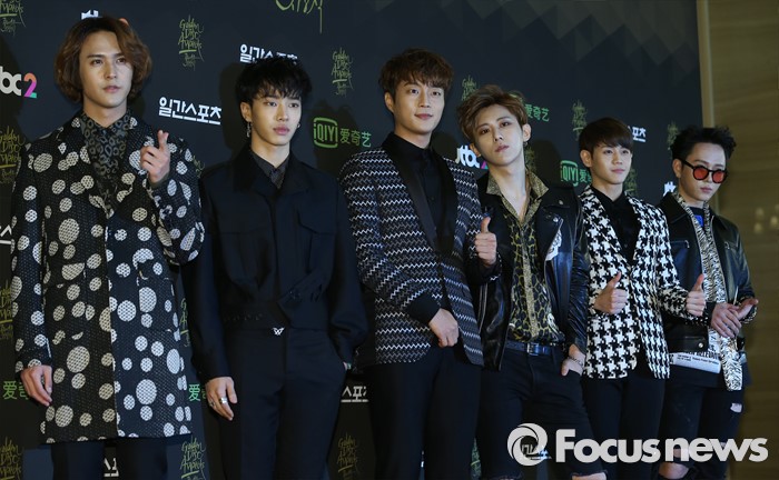 (서울=포커스뉴스) 21일 서울 동대문구 경희대학교 평화의 전당에서 열린 제 30회 골든디스크 시상식에 참석한 아이돌그룹 비스트의 멤버들이 포토타임을 갖고 있다.