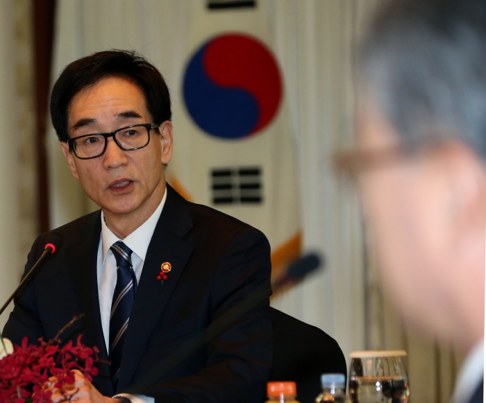 (부산=포커스뉴스) 이준식 교육부 장관이 21일 오후 부산 해운대 그랜드호텔에서 열린 전국 시·도교육감협의회 총회에 참석해 질문에 답변하고 있다. 이날 총회는 누리과정 예산 및 총회 상정 안건, 사무국 제안 안건 등을 논의했다. <사진제공=교육부>