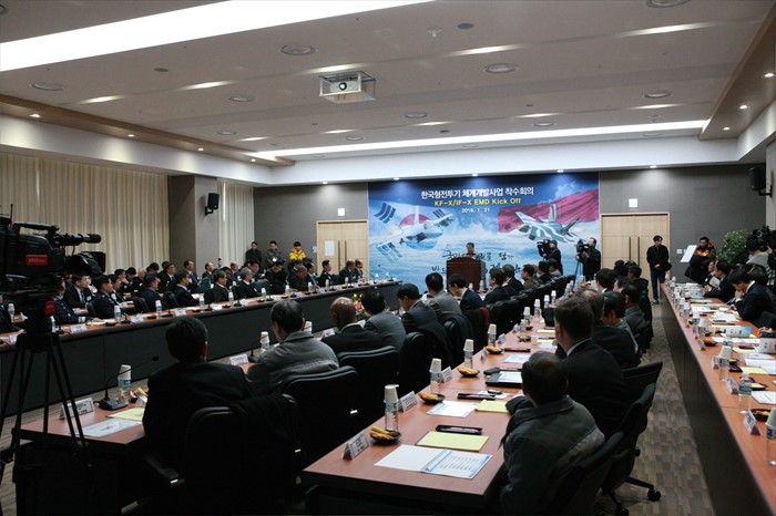 (서울=포커스뉴스) 21일 경남 사천 한국항공우주산업(KAI) 항공기개발센터에서 '한국형 전투기(KF-X) 체계개발사업 착수회의'가 열리고 있다. <사진제공=한국항공우주산업>