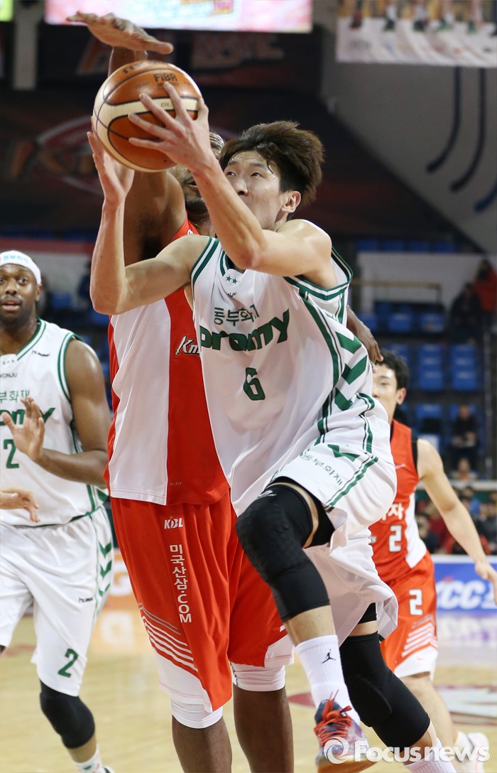 (서울=포커스뉴스) 21일 서울 잠실학생체육관에서 열린 2015-2016 프로농구 SK-동부 경기에서 동부 두경민이 SK 사이먼의 수비를 뿌리치며 레이업슛을 시도하고 있다.