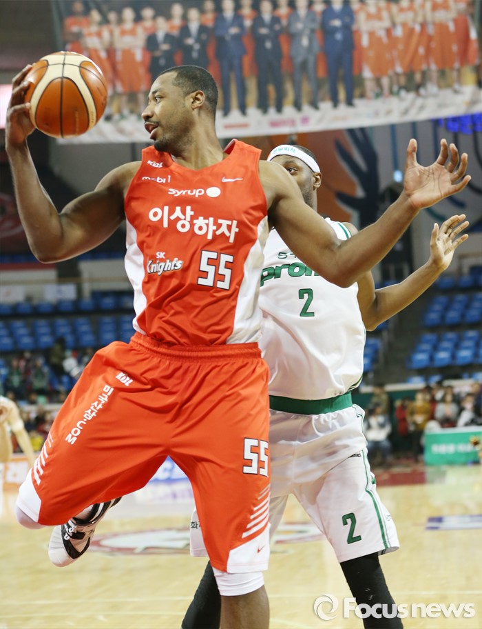 (서울=포커스뉴스) 21일 서울 잠실학생체육관에서 열린 2015-2016 프로농구 SK-동부 경기에서 SK 사이먼이 동부 벤슨에 앞서 리바운드볼을 잡고 있다.