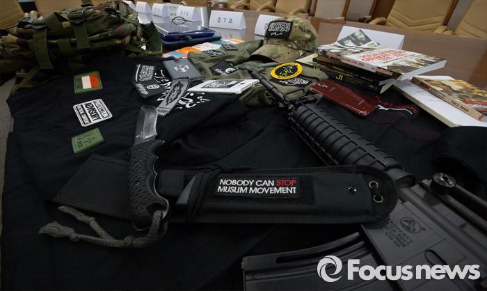 뿐만 아니라 북한산에서 알누스라의 깃발을 들거나 경복궁에서 단체의 상징이 새겨진 모자를 쓰고 사진을 찍기도 했다.경찰이 지난해 11월 18일 오후 서울 서대문구 경찰청에서 IS 연계 국제테러단체 '알누스라'를 추종한 혐의로 국내에 불법 체류 중인 인도네시아인을 검거하고 주거지에서 발견된 보위 나이프, M4A1 카빈 모형소총, 이슬람 윈리주의 서적을 비롯한 다수의 증거물들을 공개하고 있다. 조종원 기자