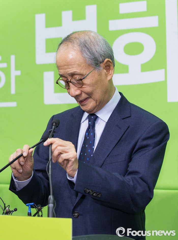 (서울=포커스뉴스) 국민의당(가칭) 창당준비위원회 공동 위원장직을 수락한 후 2주 만에 모습을 드러낸 윤여준 전 장관이 22일 오전 서울 마포구 국민의당 당사에서 기자회견을 하고 있다.