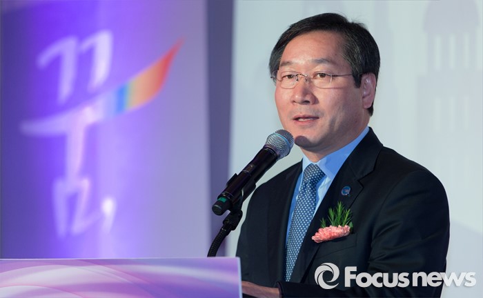 (인천=포커스뉴스) 22일 오후 인천 연수구 쉐라톤인천호텔에서 열린 검단 스마트시티 MOA 체결식에서 유정복 인천시장이 인사말을 하고 있다.