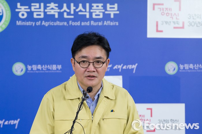 (세종=포커스뉴스) 이천일 농림축산식품부 축산정책국장이 22일 오전 세종시 정부세종청사 농식품부 기자실에서 구제역 방역 관리 강화 방안 브리핑을 하고 있다. 농식품부는 한파로 인한 소독활동의 한계와 항체 형성까지 소요되는 2주간이 방역에 가장 취약한 시기로 판단돼 전북지역 내 돼지 반출금지를 29일까지 연장한다고 밝혔다.