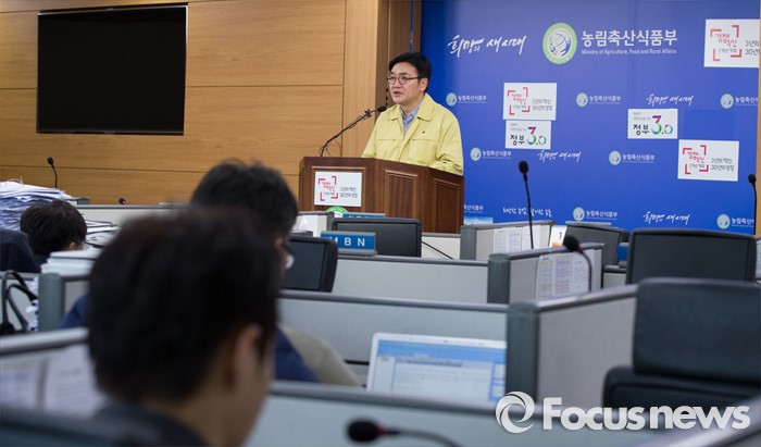 (세종=포커스뉴스) 이천일 농림축산식품부 축산정책국장이 22일 오전 세종시 정부세종청사 농식품부 기자실에서 구제역 방역 관리 강화 방안 브리핑을 하고 있다. 농식품부는 한파로 인한 소독활동의 한계와 항체 형성까지 소요되는 2주간이 방역에 가장 취약한 시기로 판단돼 전북지역 내 돼지 반출금지를 29일까지 연장한다고 밝혔다.