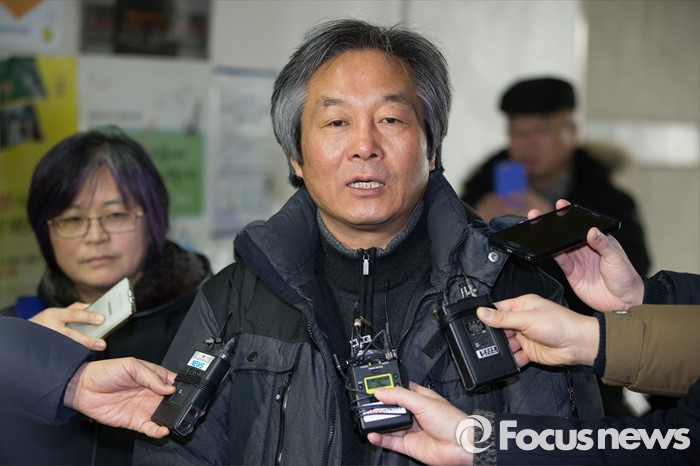 (서울=포커스뉴스) 박래군 4·16연대 상임운영위원과 김혜진 운영위원이 22일 오전 서울 서초구 서울중앙지방법원에서 열린 선고 공판을 마친 뒤 취재진의 질문에 답하고 있다.