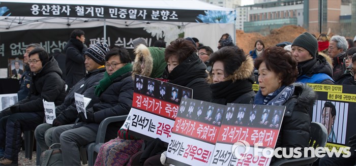 (서울=포커스뉴스) 23일 오후 서울 용산참사가 일어났던 용산4구역 재개발 지역에서 열린 '용산참사 7주기 추모대회'에 유족들을 비롯한 당시에 같이 망루에서 활동했던 생존자들이 참석하고 있다.