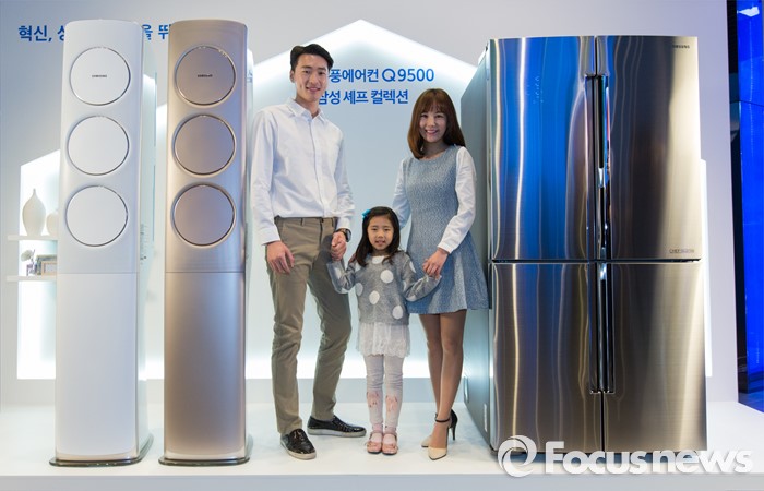 (서울=포커스뉴스) 25일 오전 서울 서초구 삼성딜라이트에서 서병삼 삼성전자 모델들이 2016 삼성전자 생활가전 미디어데이에서 무풍에어컨 Q9500과 셰프컬렉션 냉장고를 선보이고 있다.
