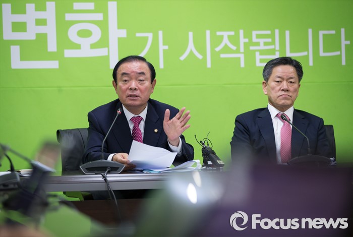 (서울=포커스뉴스)장병완 국민의당(가칭) 창당준비위원회 정책위의장과 주승용 원내대표(오른쪽)가 25일 오전 서울 마포구 국민의당 당사에서 전체 기조회의 결과 브리핑을 가진 후 기자들 질의에 답하고 있다.