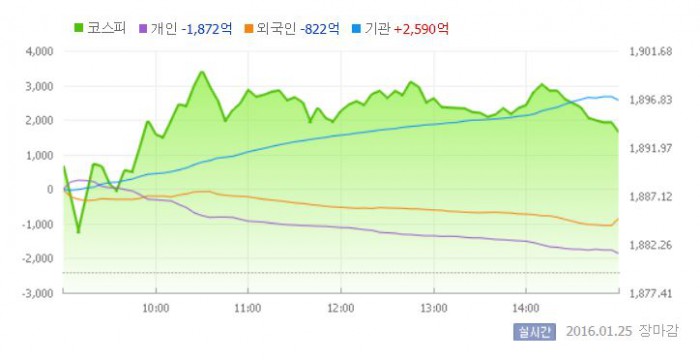 25일 코스피지수는 전거래일 대비 0.74%(14.00포인트) 오른 1893.43에 장을 마쳤다. 코스닥지수는 전거래일 보다 1.56%(10.48포인트) 상승한 681.43에 마감했다.