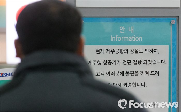 전국적으로 매서운 한파가 몰아치고 제주 전역에 폭설이 쏟아지면서 활주로가 폐쇄된 탓이다.
