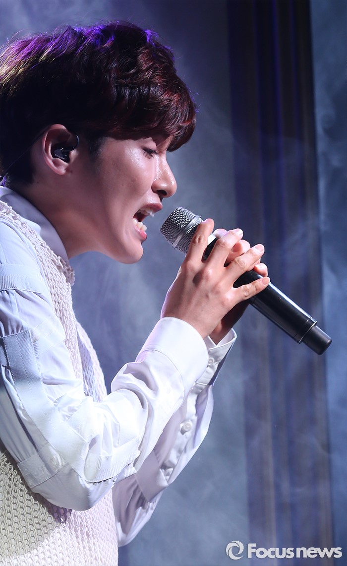 (서울=포커스뉴스) 25일 오후 서울 용산구 현대카드 언더스테이지에서 열린 미니앨범 '어린왕자' 쇼케이스에 참석한 가수 려욱이 신곡 '알 수도 있는 사람'의 무대를 선보이고 있다.