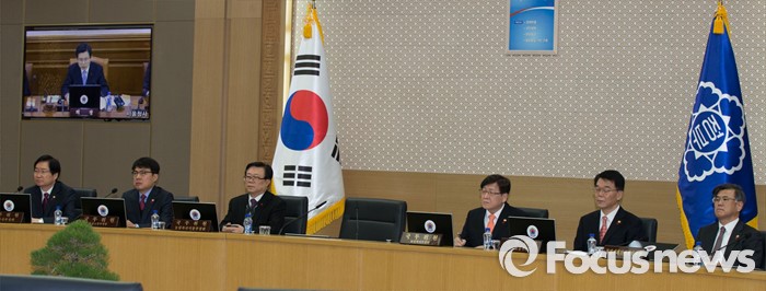 (세종=포커스뉴스) 26일 오전 세종시 정부세종청사 국무회의장에서 열린 서울-세종 영상 국무회의에서 세종청사에 참석한 국무위원들이 황교안 총리의 모두발언을 경청하고 있다.