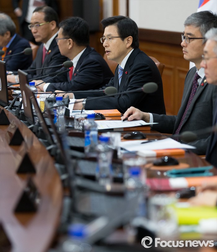 (서울=포커스뉴스) 황교안 국무총리가 26일 오전 서울 종로구 정부서울청사에서 국무회의에 참석해 모두발언을 하고 있다.