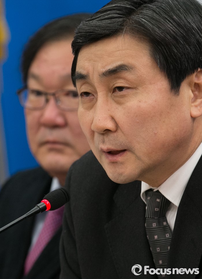 (서울=포커스뉴스) 이종걸 더불어민주당 원내대표가 김종인 선거대책위원장은 '엄호', 새누리당 안대희 최고위원에 대해서는 '공격'하는 발언을 했다.