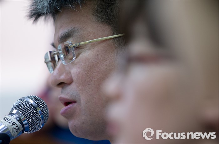 (서울=포커스뉴스) 26일 오전 서울 서대문구 전국교직원노동조합 대회의실에서 변성호 전교조 위원장이 법외노조통보 항소심 판결과 교육부 후속조치에 대한 전교조 입장 발표 기자회견에 참석해 인사말과 모두발언을 하고 있다.