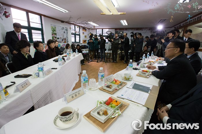 (서울=포커스뉴스) 유일호 경제부총리 겸 기획재정부 장관이 26일 오전 서울 강서구 보라유치원에 방문해 유치원 관계자 및 학부모들과 간담회를 열고 있다.