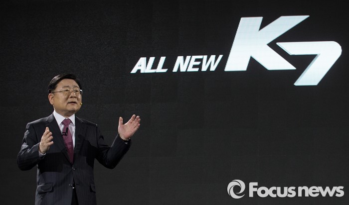| △ '올 뉴 K7' 발표하는 이형근 기아차 부회장 |