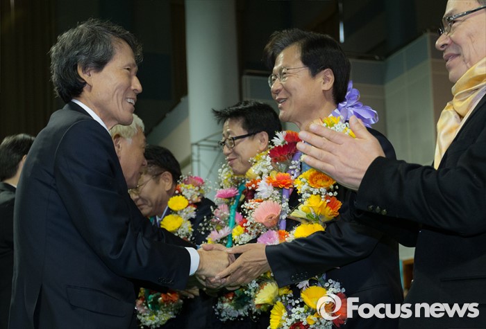 | △ 악수하는 한상진과 천정배 |
