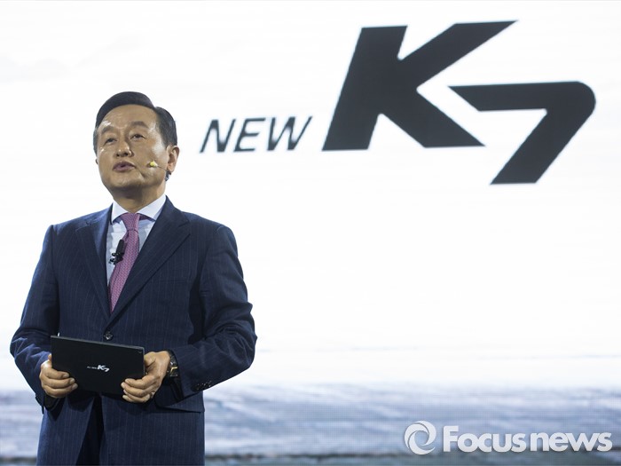 | △ '올 뉴 K7' 발표하는 김창식 기아차 부사장 |