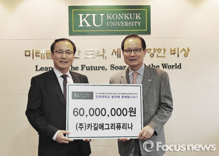 (서울=포커스뉴스) 건국대학교는 글로벌 동물영양 전문기업인 카길애그리퓨리나가 건국대 동물생명과학대학 학생들을 위한 장학금으로 6000만원을 기부했다고 26일 밝혔다.