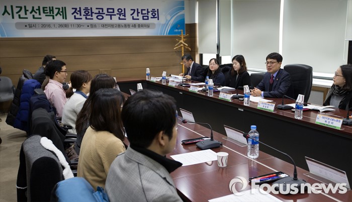 (대전=포커스뉴스) 고영선 고용노동부 차관이 26일 오전 대전 서구 대전지방고용노동청에서 열린 시간선택제 전환공무원 간담회에 참석해 의견을 나누고 있다.