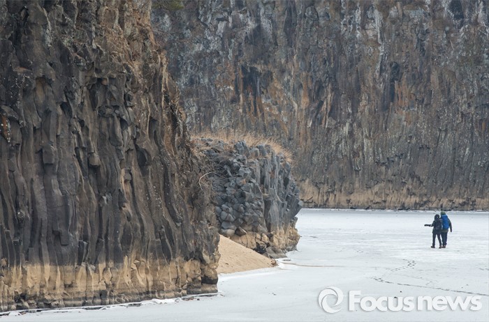 (철원=포커스뉴스) 26일 오전 강원 철원군 한탄강 일대에서 여행객들이 얼음트래킹을 즐기고 있다.