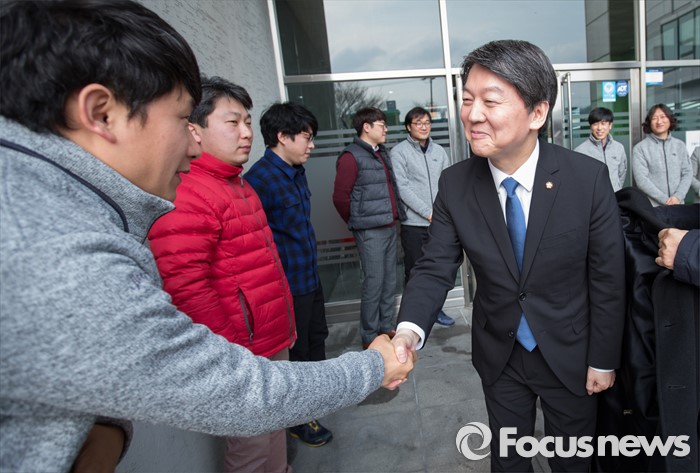 (전주=포커스뉴스) 국민의당 안철수 의원이 26일 오후 전주시 완산구 전주정보문화산업진흥원 IT벤처센터에서 열린 벤처기업 종사자들과 함께하는 도시락 간담회를 마치고 벤처기업 종사자들과 인사를 나누고 있다.