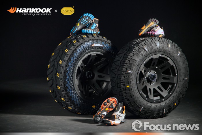 이 회사는 박람회에서 아웃솔 브랜드 ‘비브람(Vibram)’과 함께 제작한 오프로드용 콘셉트 타이어 '다이나 믹스(Dyna Mix)’와 ‘다이나 싱크(Dyna SYNC)’ 2종을 전시한다. 양사는 지난 2015년 업계 최초로 타이어와 신발을 접목한 접지 기술력을 토대로 신제품을 개발했다.