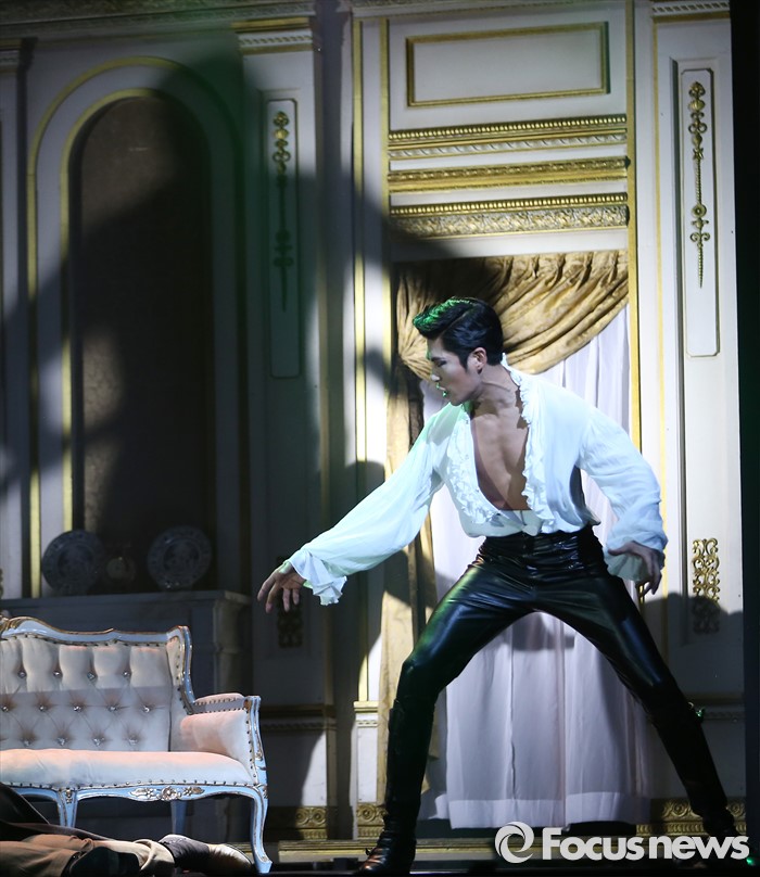 (서울=포커스뉴스) 26일 오후 서울 종로구 세종문화회관에서 열린 뮤지컬 '드라큘라' 프레스콜에 참석한 배우 박은석이 하이라이트 공연을 선보이고 있다.